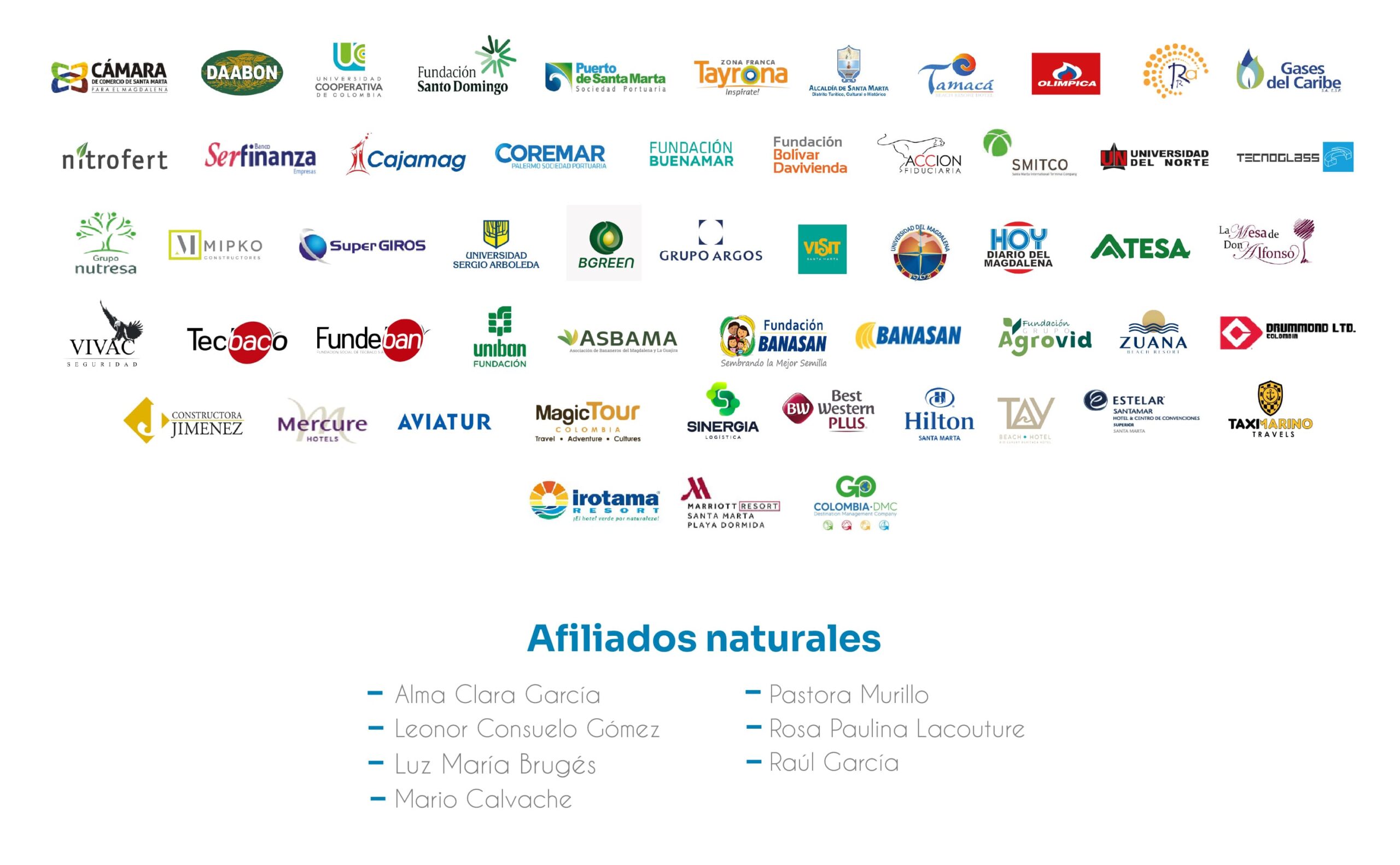 Realizamos nuestra labor gracias al apoyo de nuestros afiliados, las empresas del sector privado, la Cámara de Comercio de Santa Marta y los medios de comunicación, quienes, con su compromiso y respaldo, hacen posible que sigamos trabajando por el desarrollo y la transformación positiva de nuestra ciudad